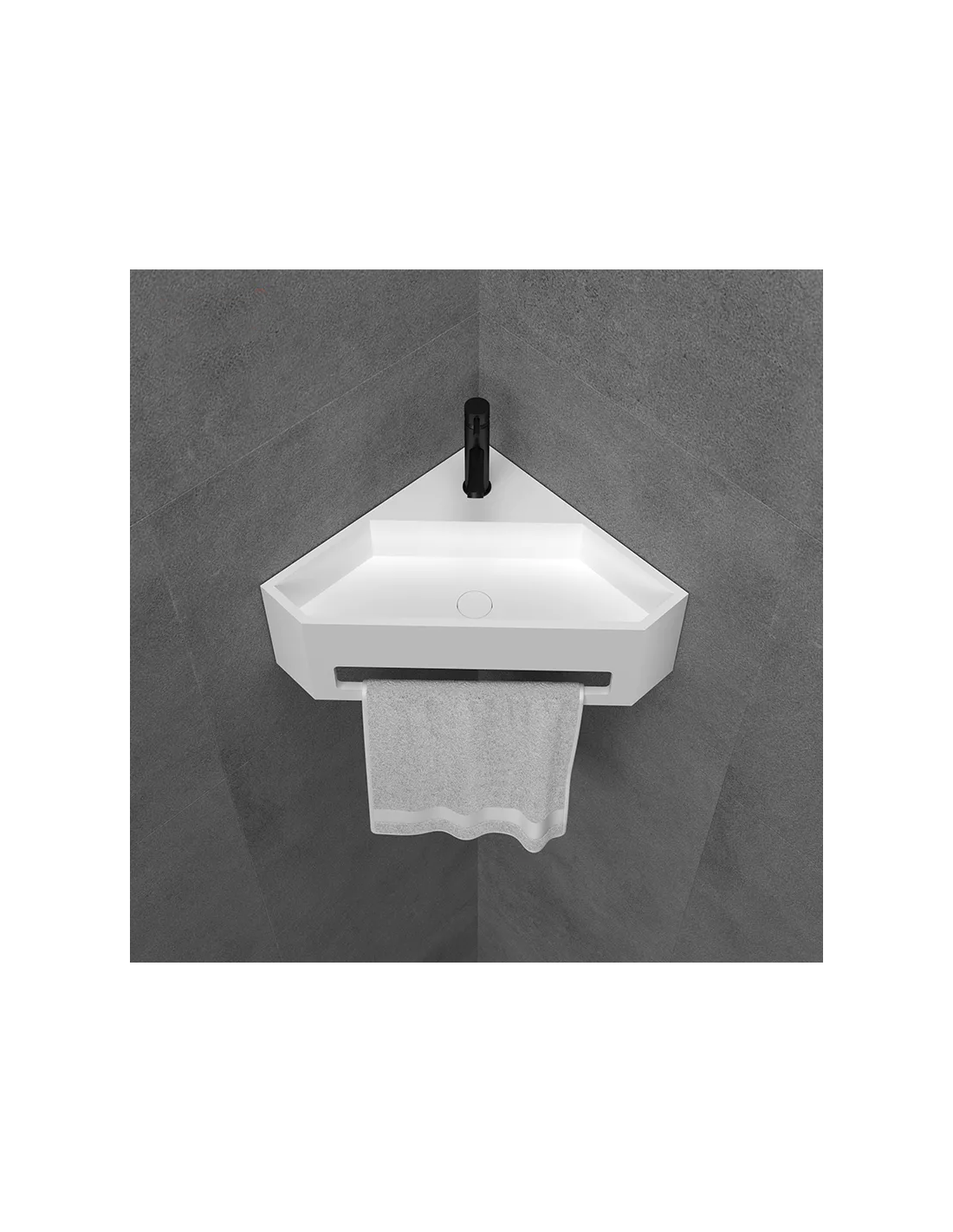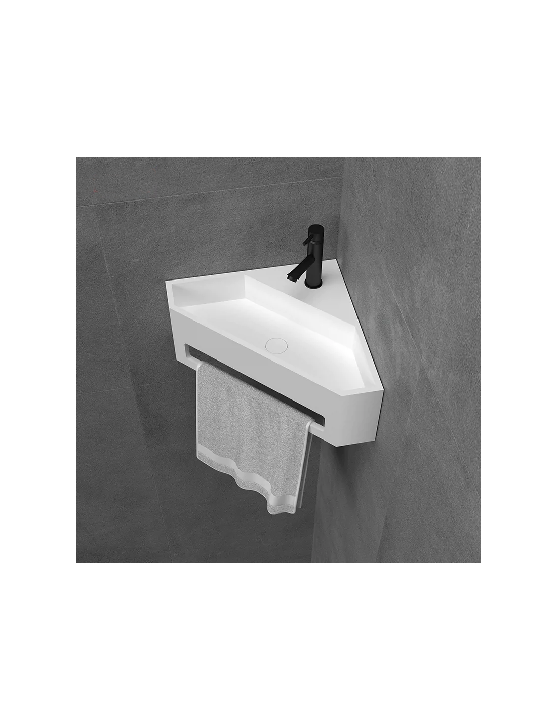 Die Die Ecke Hände OPTIM' in Solid Surface White Mat wird leicht in kleine Räume passen. Platz sparen, wird es seinen Platz an der Wand Ihres kleinen Design-Bades oder Ihrer Toilette hängen.