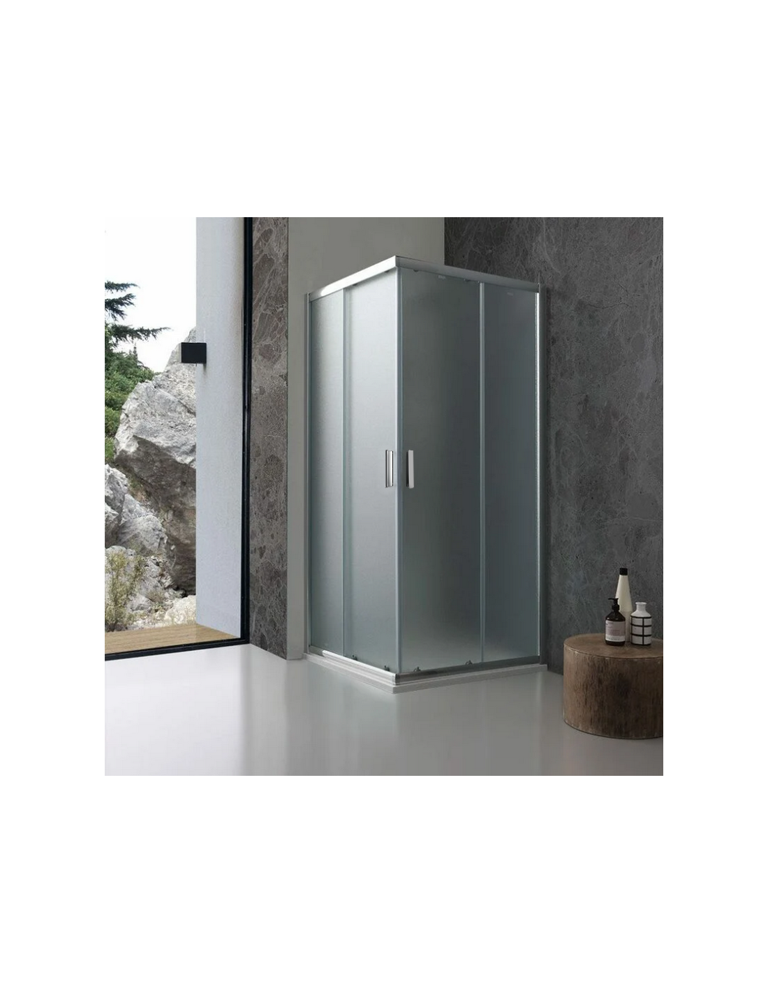 Raum für Ihr Badezimmer, die Dusche Wand Quadrat Osaka 90 cm mit Winkelzugang ist sehr praktisch. Diese Duschkabine besteht aus zwei schiebetüren mit 2 ABS Griffen und zwei festen Platten. Duschtüren sind magnetisiert, um einen wasserdichten Verschluss zu gewährleisten. Die 4 Platten der Eckwand sind in 6 mm Granitglas und die Profile sind in Matt Aluminium. Die Höhe der Wand beträgt 195 cm.