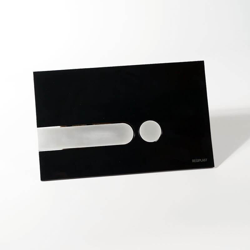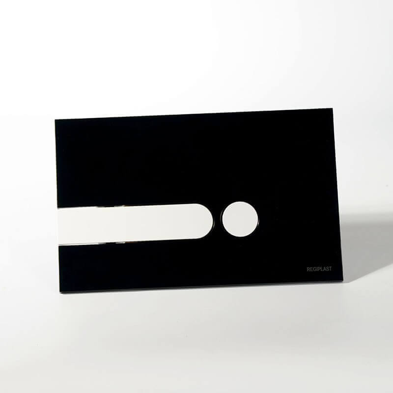 Entdecken Sie die schwarze rechteckige Doppelsteuer-Triggerplatte mit Farbsatz für das mit Ihrem Design WC und universellem Tragrahmen verbunden. Die doppelte Kontrolle der Platte, ermöglicht es Ihnen, den Wasserfluss 3 oder 6 Liter zu wählen, wodurch Sie ernsthafte Einsparungen von Wasser zu machen. Diese Platte, zugeordnet eine schwarze hängende toilette wird seinen platz in einem finden modernes bad oder design wc.