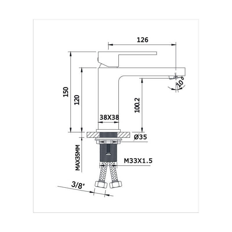 Choose the Cube square mixer tap for your design washbasin with body Brass matt black finish. The faucet and sink has a G9/16 cartridge and the beak is equipped with an anti-calcium "foam". It has a height under beak of 10.02 cm.
