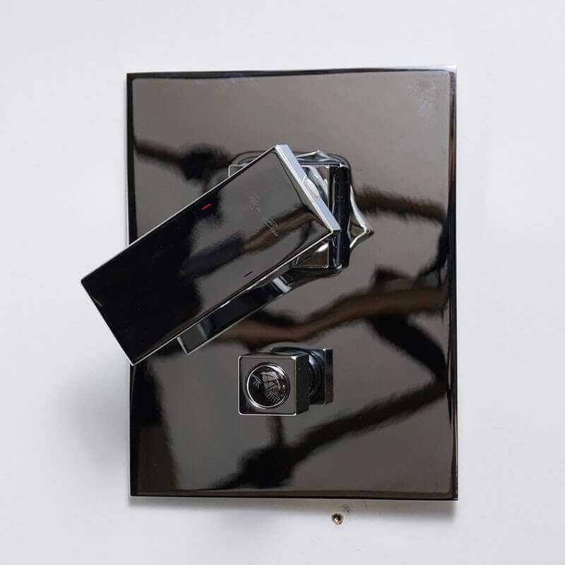 Recessable shower tap all brass chrome finish to mount with a head apple and/or hand pommel. Possibility of feeding only one shower head by closing the feed with a 15/21 cap.