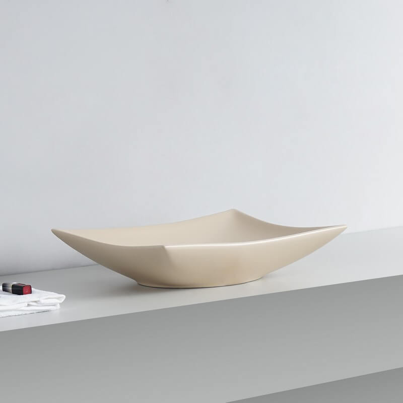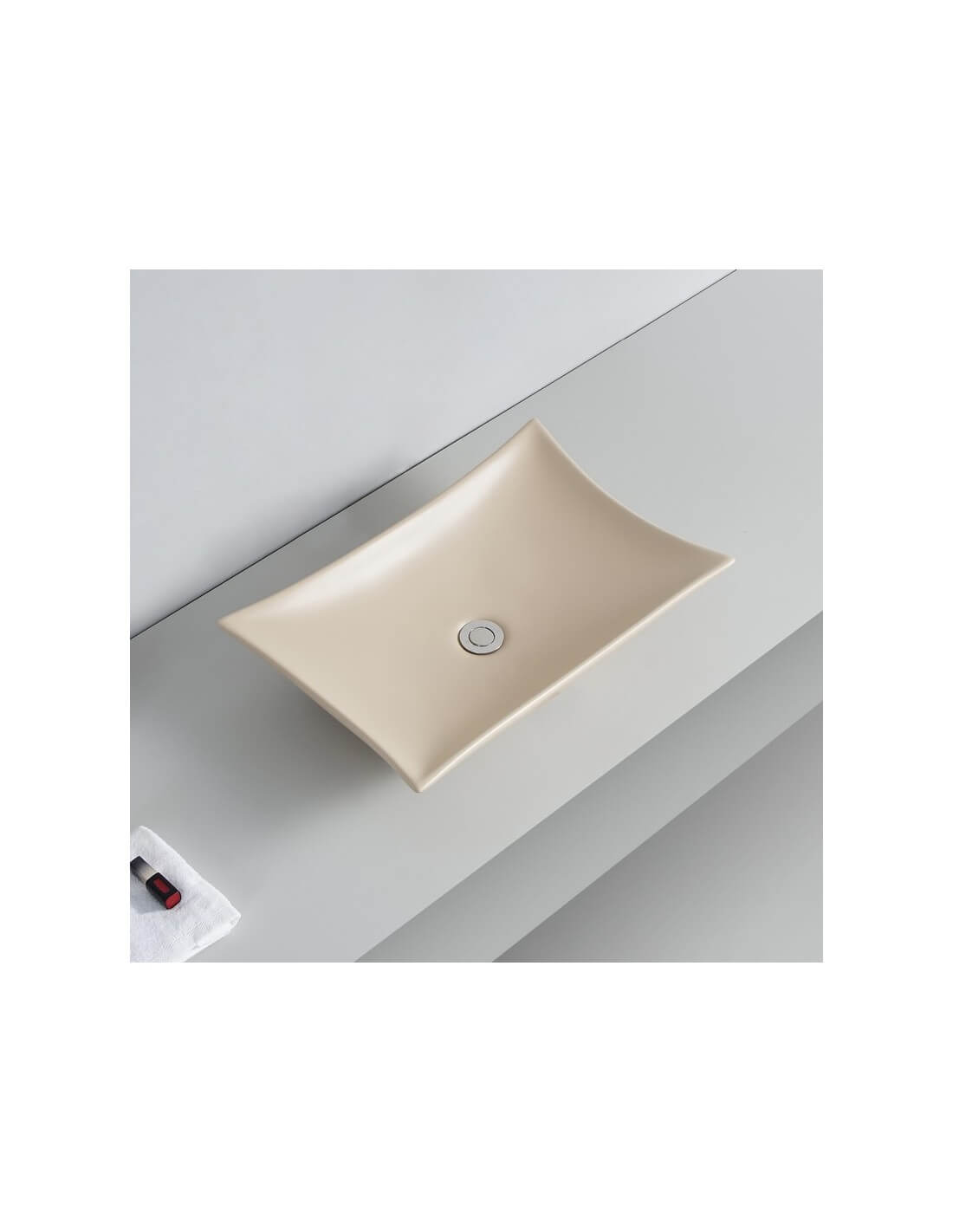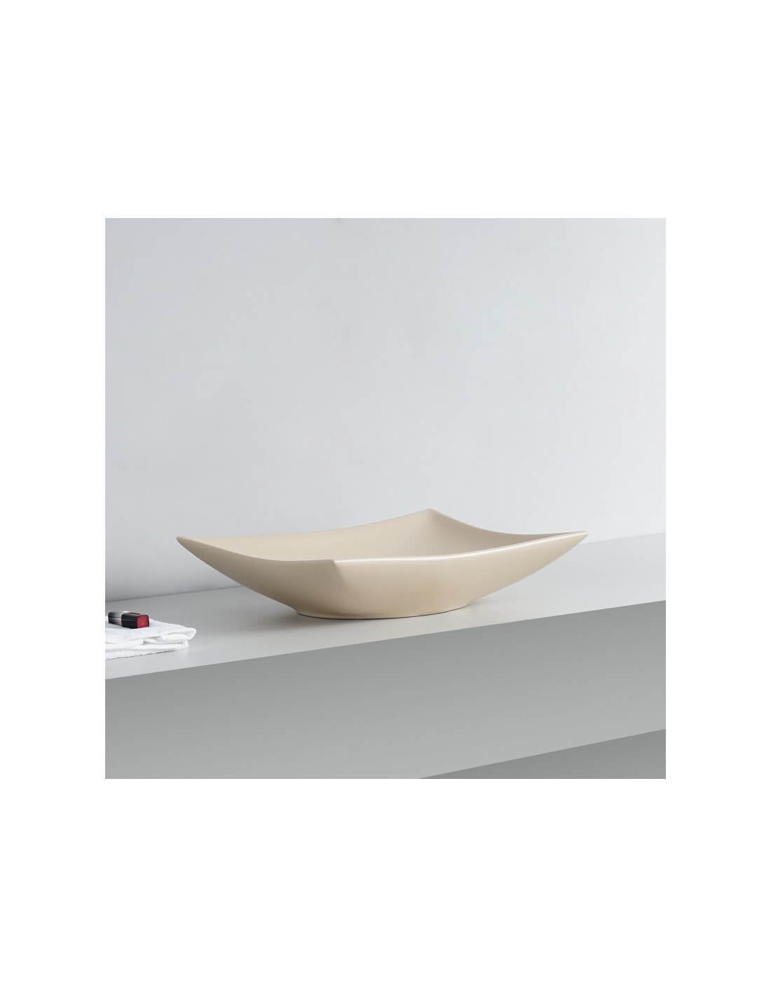 This ceramic laying basin will be the modern element of your design bathroom. Its raised angles and matt latte color will bring your bathroom style.