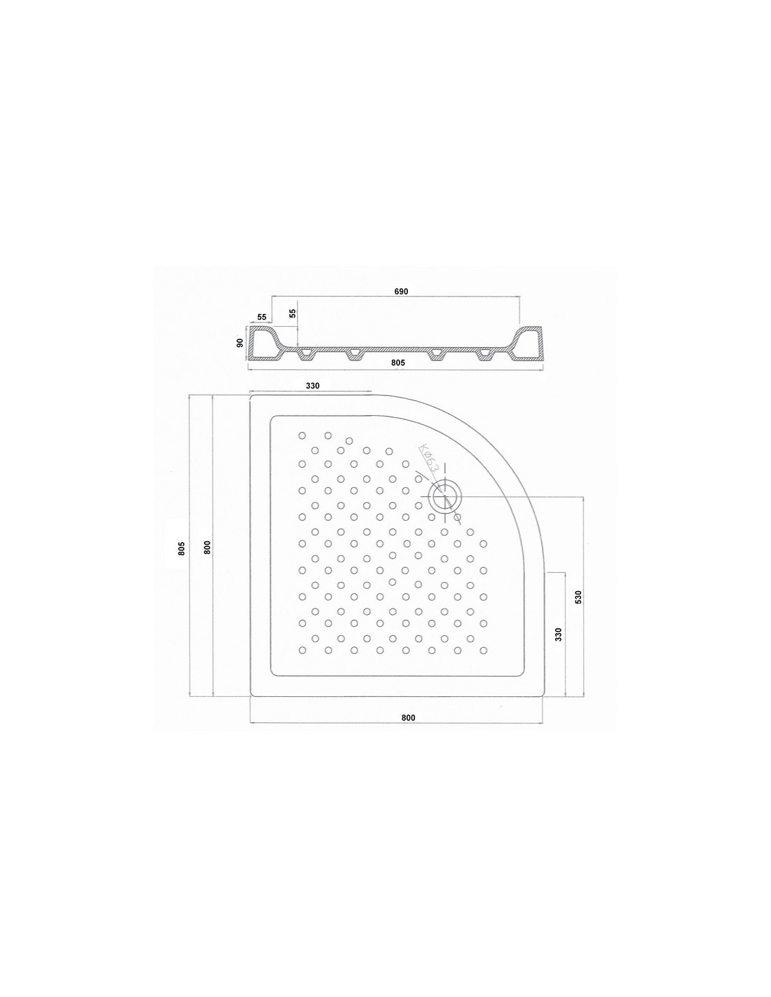 The Shower receiver quarter round 80 cm allows you to optimize the space in a Small Bathroom by placing it in an angle. Thanks to its non-slip coating, all members of your family can enjoy your new shower safe!
