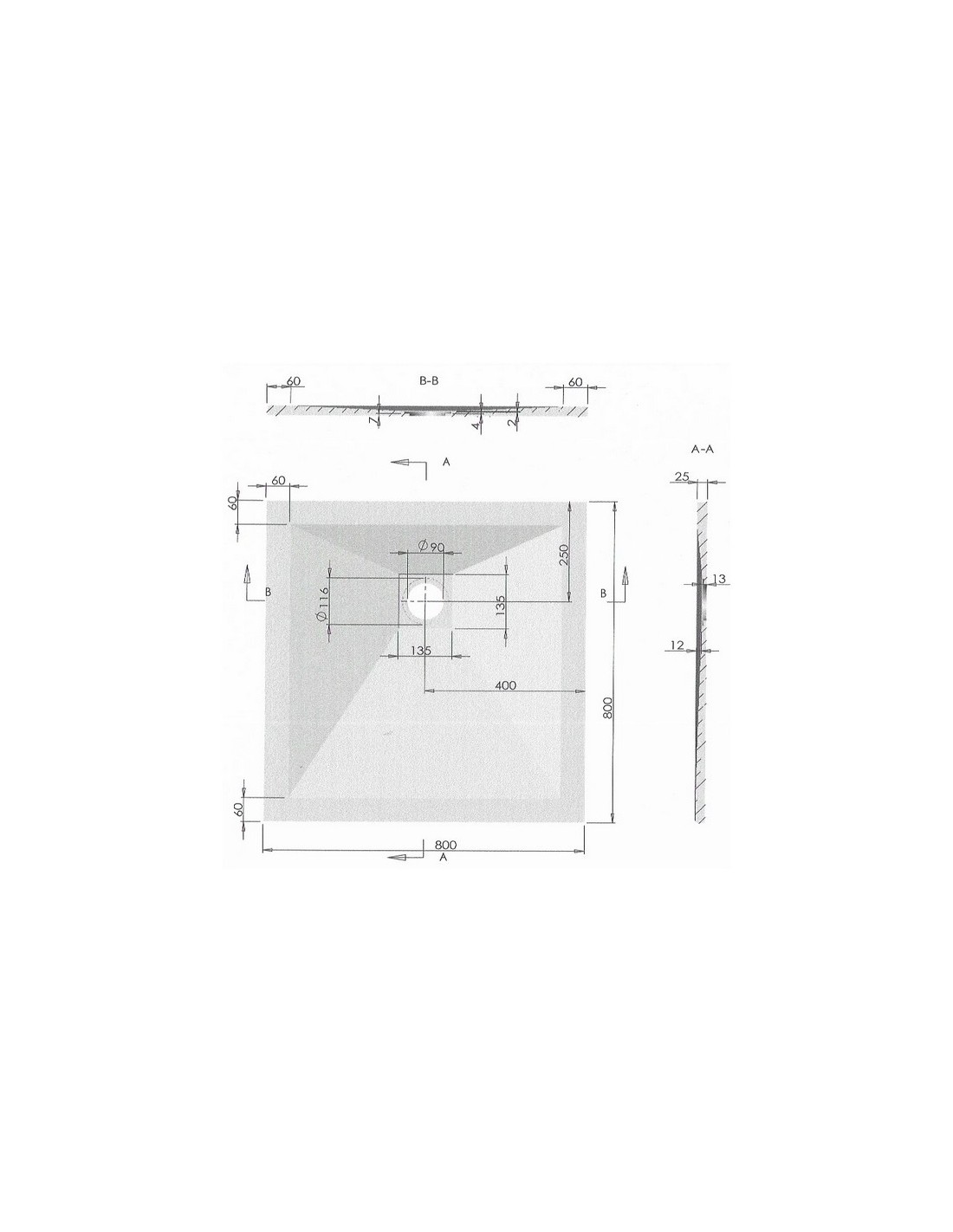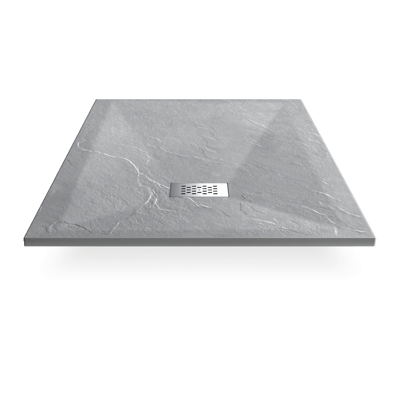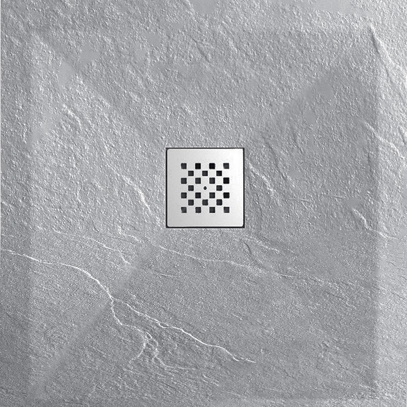 The shower tray to install or recess extra flat is on a gentle slope to guide the water to the escape grid. This square grille is removable and stainless steel. The shower tray comes with a 90 mm diameter draining system.