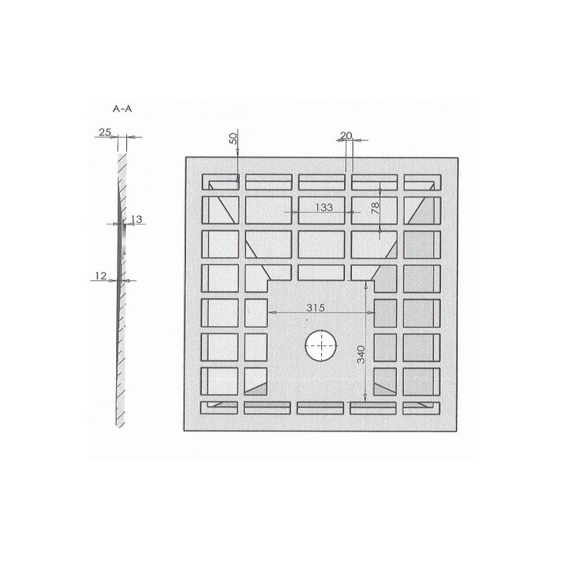 - Square grid 13.2 cm x 13.2 cm x 1.2 mm.