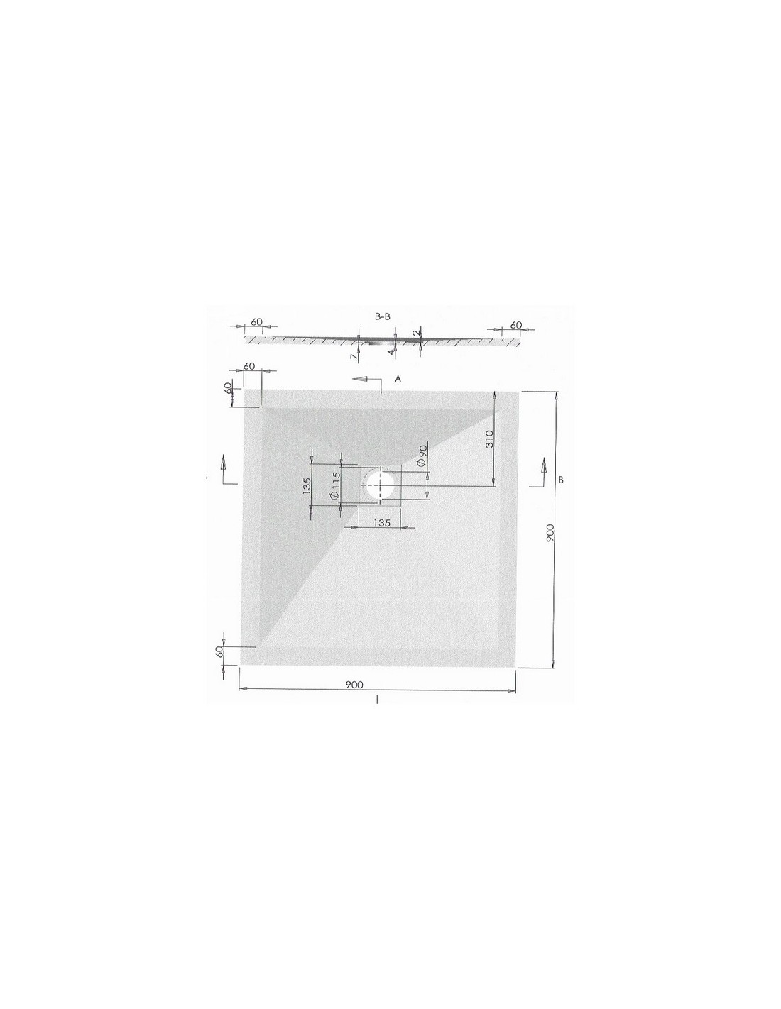 - Diameter of the shower cap: 90 mm.