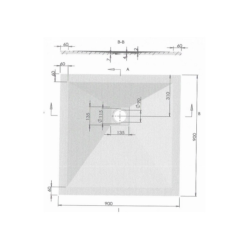 To avoid any risk of overflowing, the extra flat shower tray is gently sloping to facilitate the evacuation of water. A removable stainless steel square grid completes this extra flat receiver in a resolutely contemporary way. It comes with a 90 mm diameter draining system.