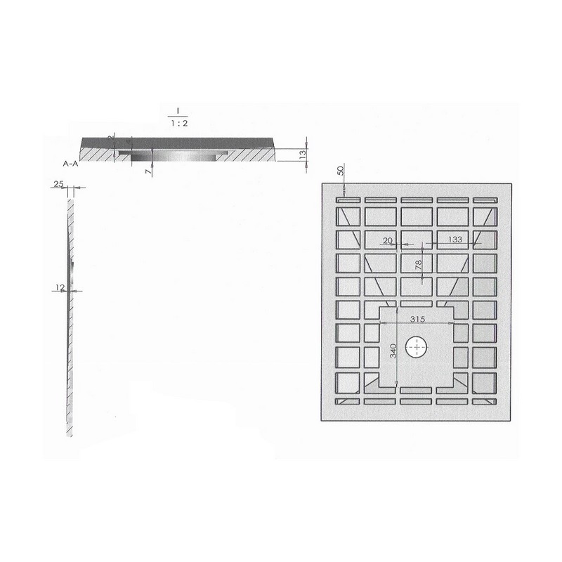 - Square grid 13.2 cm x 13.2 cm x 1.2 mm.