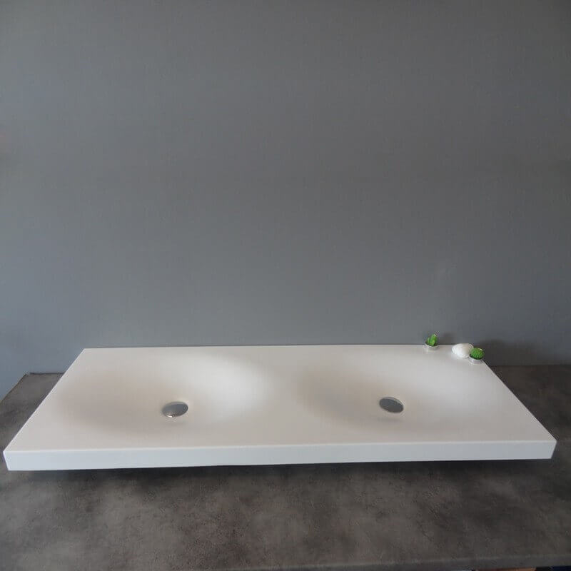 Washbasin suspended epure double washbasin solid white matt surface.