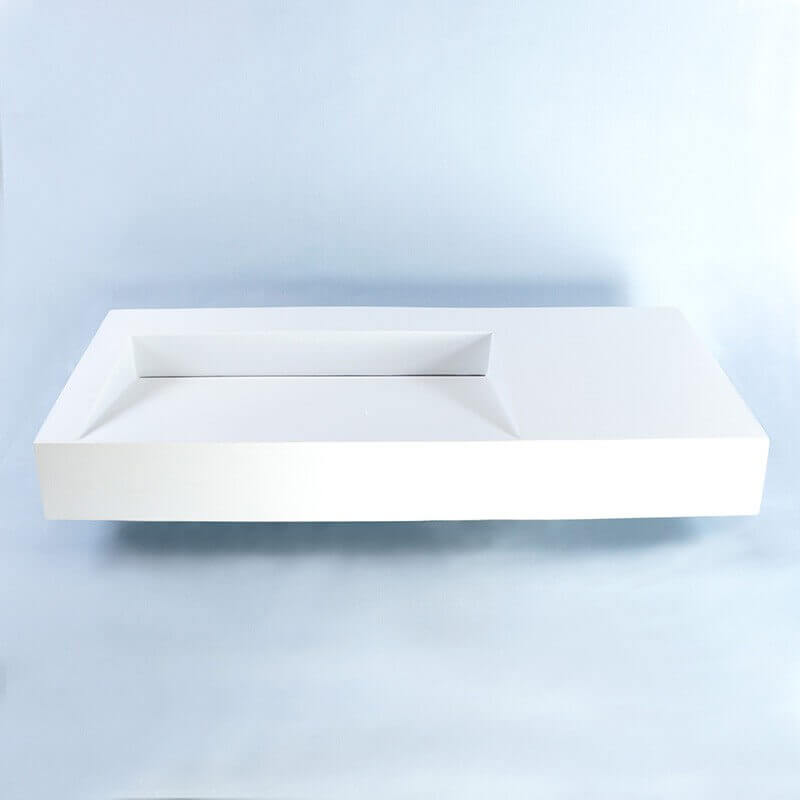 - Plan pierced at the back to allow attachment to the wall and installation of the washbasin with the storage area on the right side.