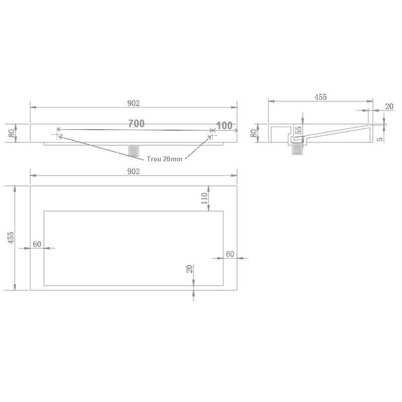 For greater freedom in the choice of valves, the plan is not pierced. So you can drill the plan with a bell saw to install the faucet.