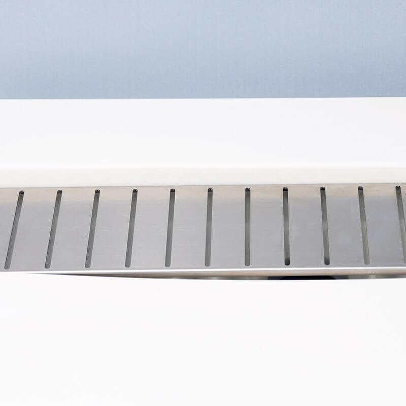The Solid Surface LINE Vasque with graphic lines fits perfectly into all modern bathrooms. Design vase bright white bathroom to be placed on cabinet or plan with enhanced or wall tap. With the quality material that is the composite, you will have a basin to be laid robust and design. Thanks to its metal grille, free flow evacuation is simply done with a grilled bond. There is no need to buy a leap click clac. As for the siphon, consider putting a square chromed brass siphon to give your bathroom a design and elegant side.