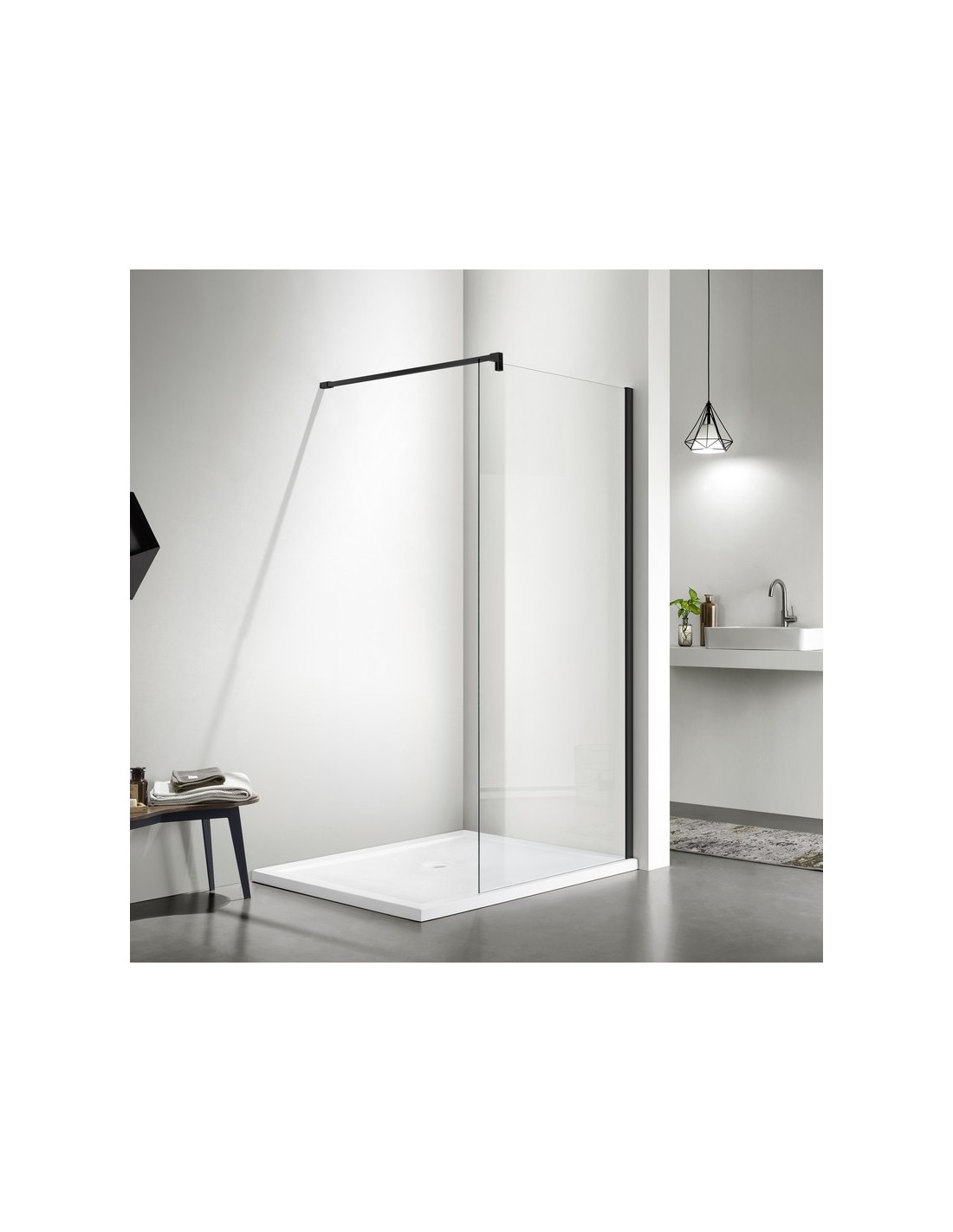 The Shower wall 100 cm Bahia is made of transparent glass. The profiles are in matt black. For more rigidity, the Walk in wall has an adjustable stabilizer bar. The fixed shower wall to the italian is reversible for installation to the right or left. Its length is adjustable from 98 to 100 cm.