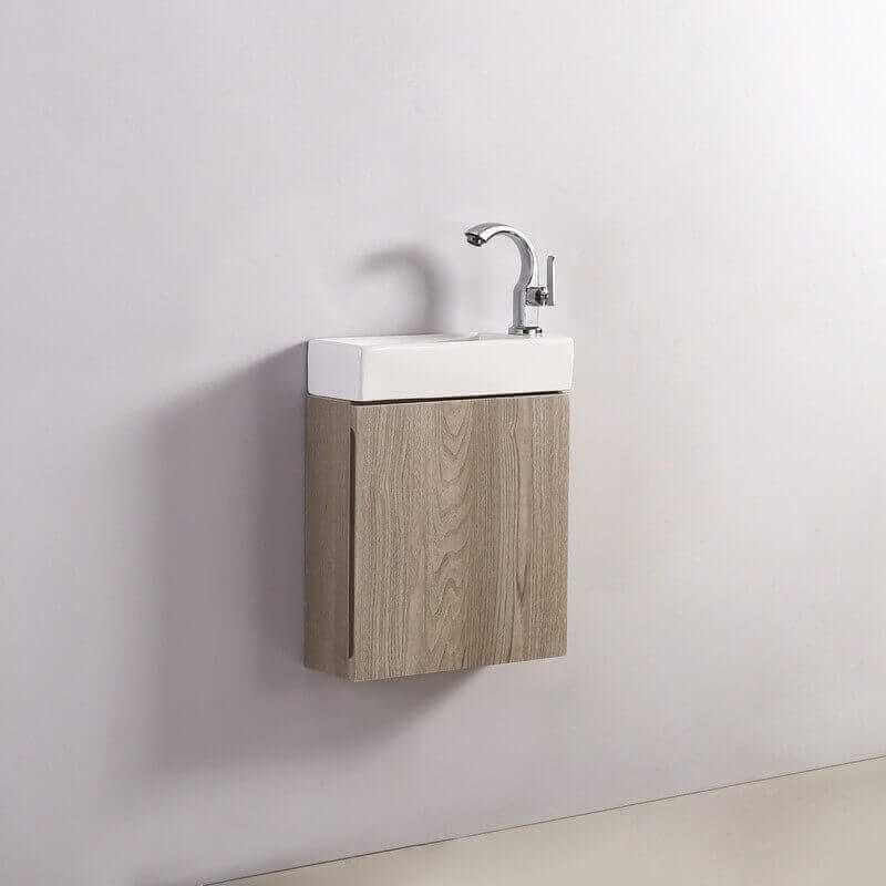 Very practical, the hanging furniture is installed under a small wash hands of a size of 38X14 cm, like our wash hand space gain Minimalist (NON included). This ceramic hand wash is available in white or black, and with taps on the right or left, depending on your desire.
