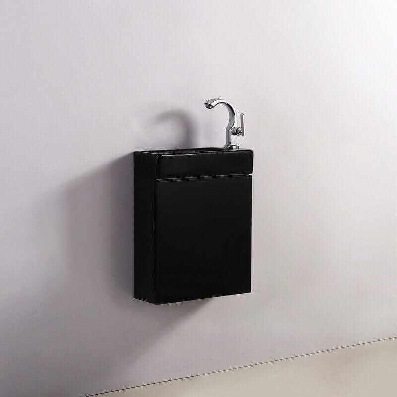 The small black ceramic sink can be suspended on a wall or placed on a toilet. To hang the hand design lava choose the fixings according to the material of your wall or partition.