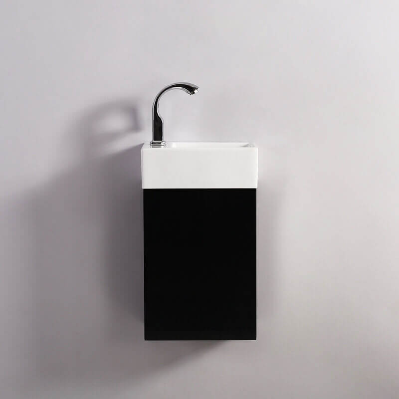Set up your toilet functionally with the hand wash cabinet Dark suspended. Storage cabinet under hand wash (not provided). Black colour 18 mm particle board sides. Black door shiny MDF 19 mm. Length 30 cm. Depth 18 cm. Height 40 cm. Comes on. Door hinges to the right. Reversible door. NOT included the Hand wash Essento. Guarantee 2 years.