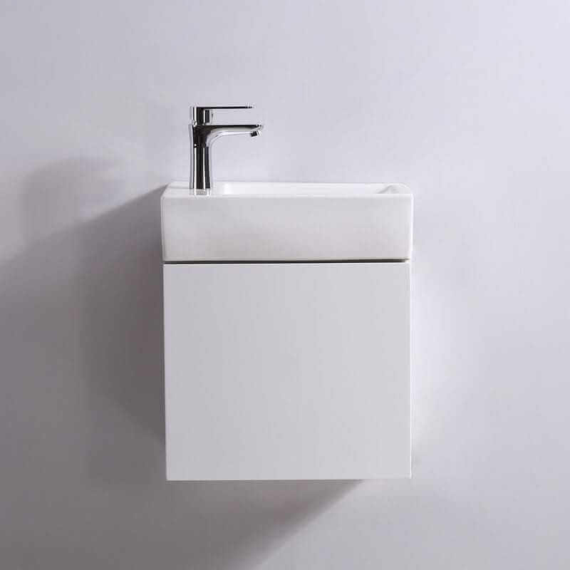 The rectangular hand wash cabinet is designed to accommodate a hand wash, (which is not included), like our Hand Wash Studio. This ceramic hand wash is available in white or black, and with taps on the right or left, depending on your desire.