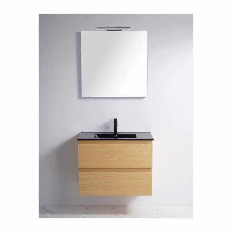 The drawers are equipped with "soft close" slides to close them delicately and in silence. The furniture is light oak on the sides and on the facades of the drawers. The wood, will bring you a zen and serene touch to your design bathroom.