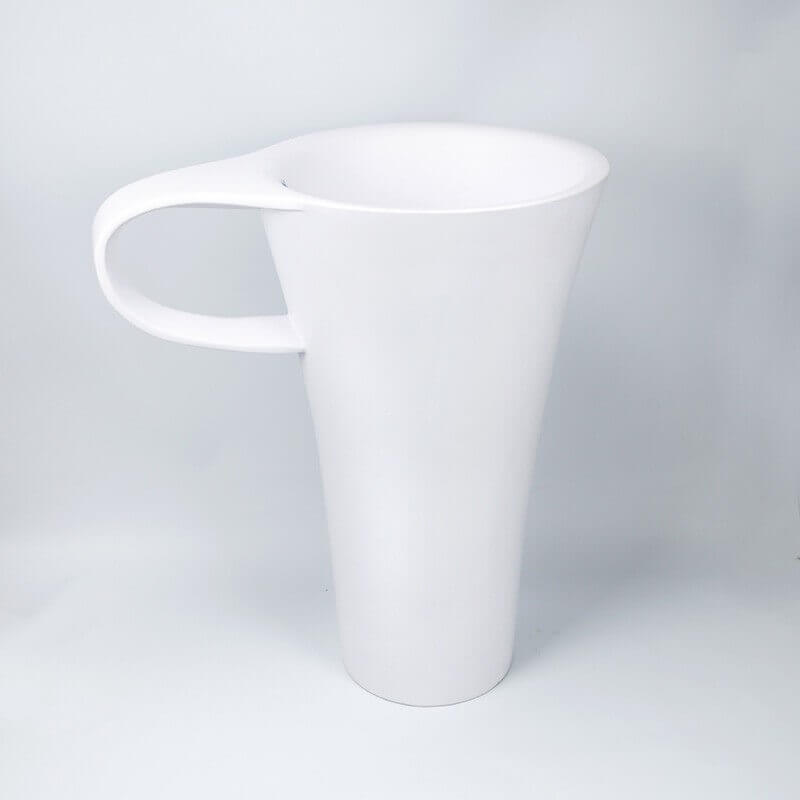 The Cup is made of composite material, which is a mixture of synthetic resin and mineral materials. Let yourself be surprised by its softness and high quality. The cup handle will make an excellent towel holder. Differentiate yourself with an out-of-standard and high-end sink. With regard to the bond, which is not included, we recommend a white ceramic clasp to perfect the decoration of your interior.