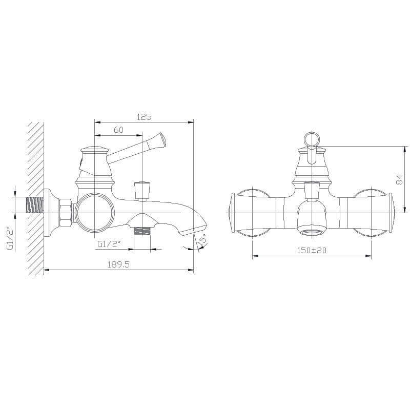 Faucet Bath mixer quality all in Chromé brass. Mural Assembly.