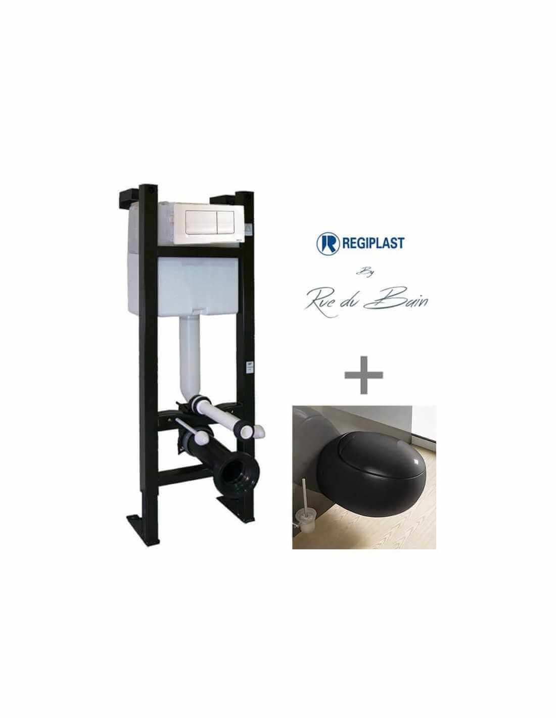 Black Ove WC pack including a black design suspended bowl, a self-supporting Régiplast chassis and a double-order black plate. Buy everything together and save money. Practical and functional, this pack will quickly fit into your bathroom. 5-year warranty: Building-support. 2-year warranty: Ove hanging wc and trigger plate.