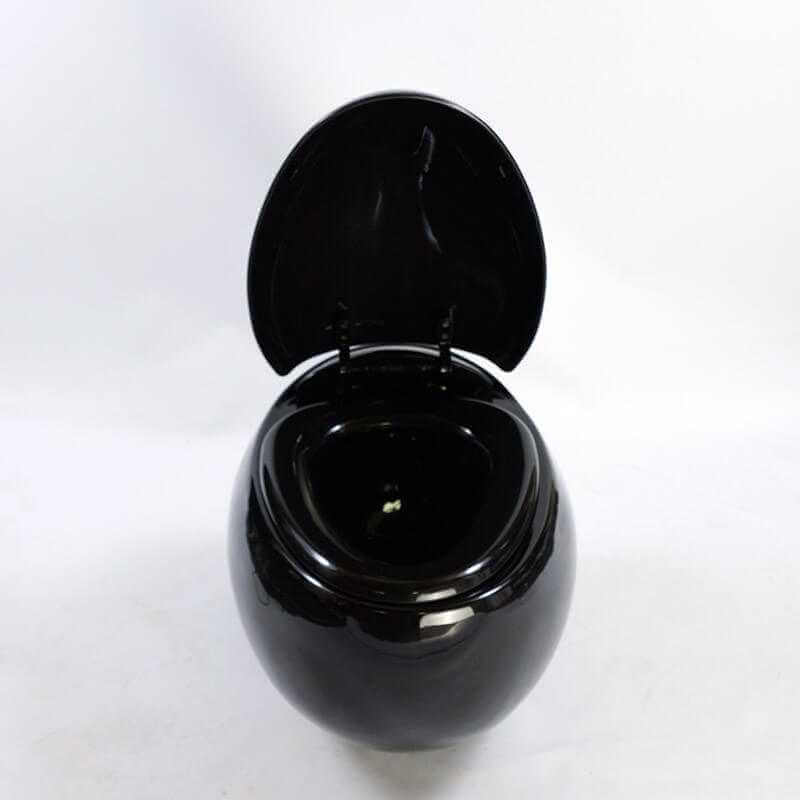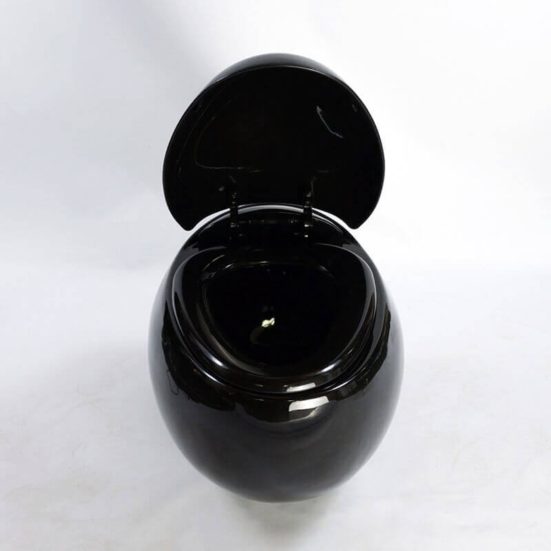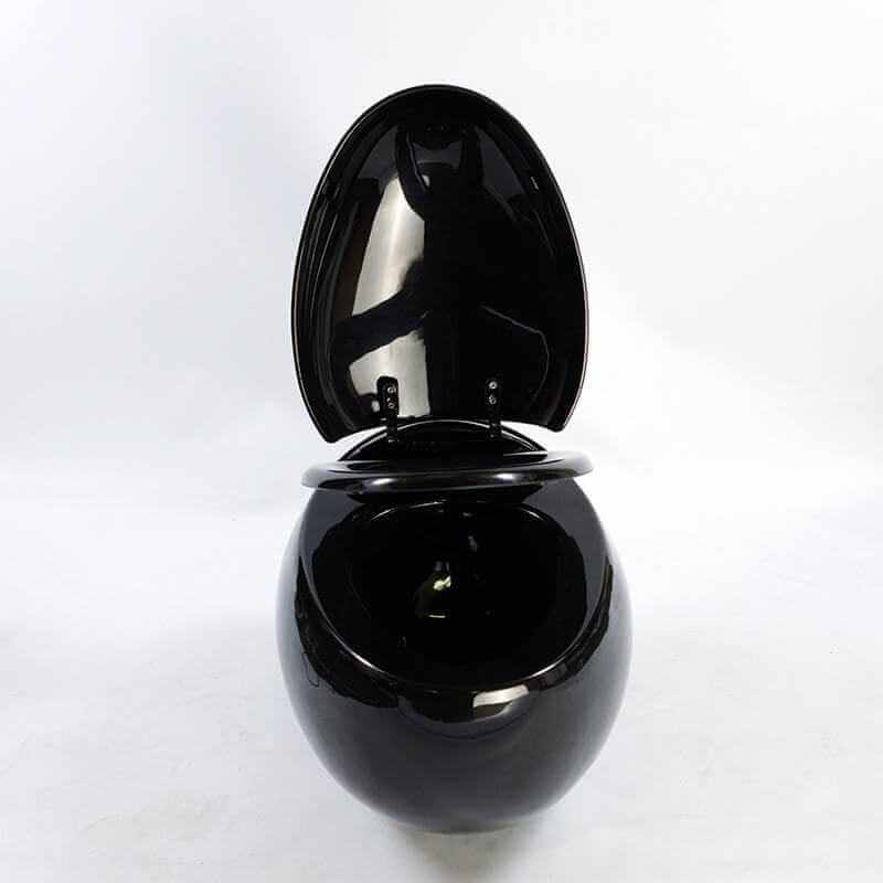 Discover the Ove design hanging WC in the shape of a shiny black ceramic egg. This suspended toilet bowl has a wC cutting curved that fits perfectly with the toilet bowl hanging egg design. The black egg hanging toilet is equipped with a fall brake for a quiet and safe closure.