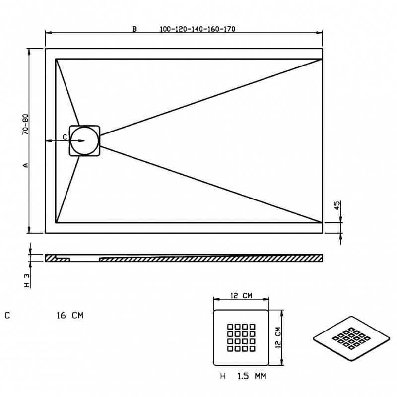Tamaño del receptor de ducha