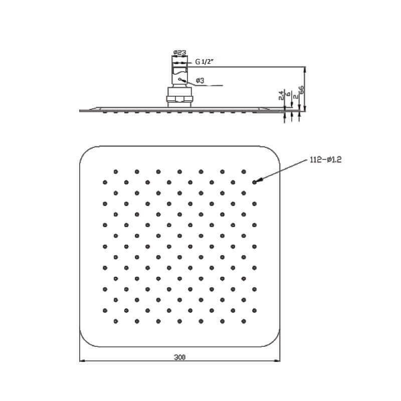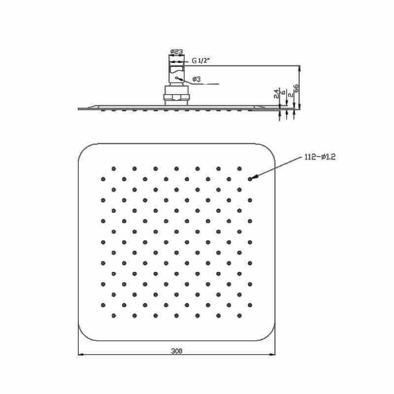 Cabeza de ducha 30x30.