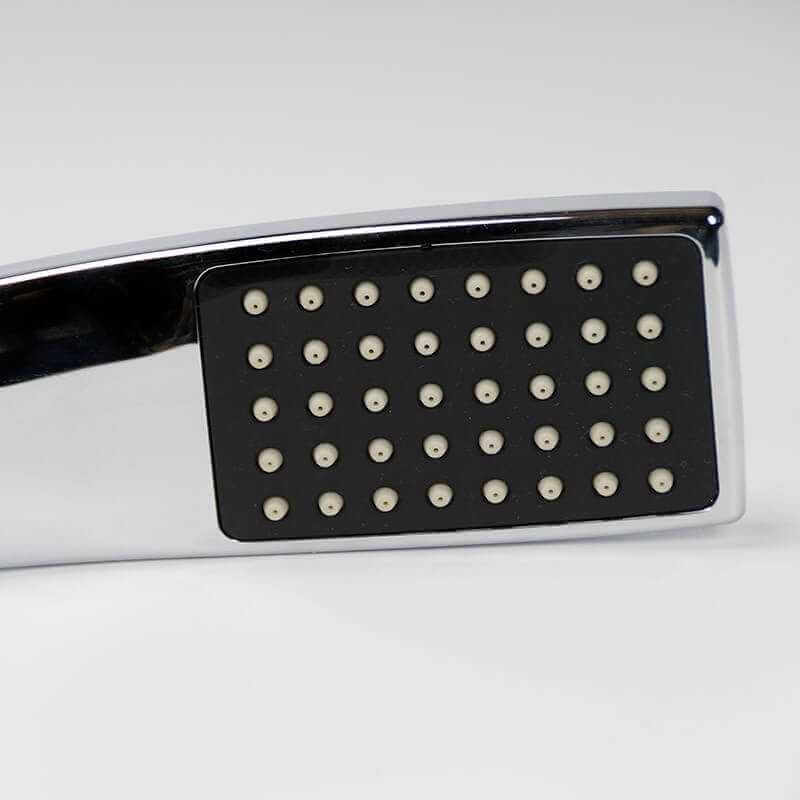 Cracking para este cuadrado cromo ABS / ducha de mano negra para su ducha italiana o ducha en la cabina. Con sus granos anti-calcio, nunca ha sido más fácil limpiar la ducha. 1 año de garantía.