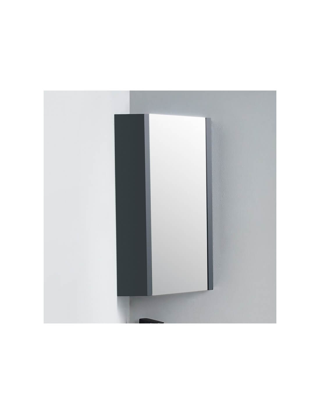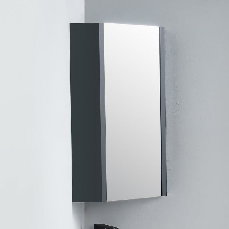 - Armario de ángulo alto suspendida con puerta de almacenamiento y espejo.
