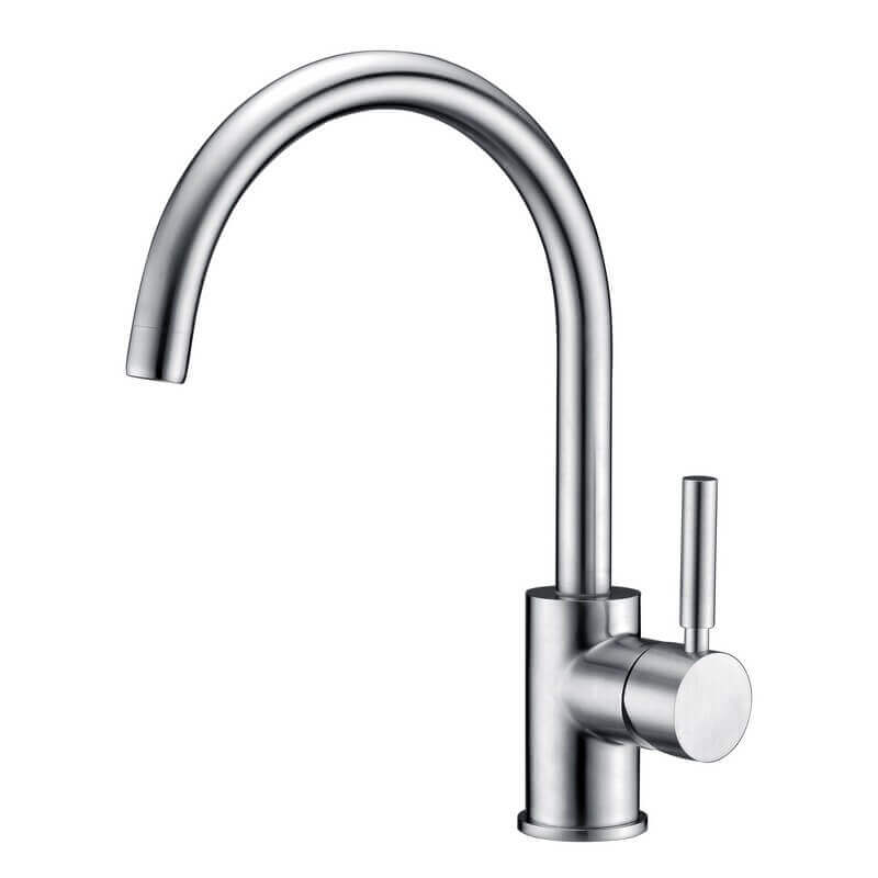Descubre válvula de mezcladora elevada Aleación cilíndrica en acero inoxidable cepillado con un pico en forma de U. Este mezclador tiene una espuma anti-calcar y para más comodidad su pico está girando.