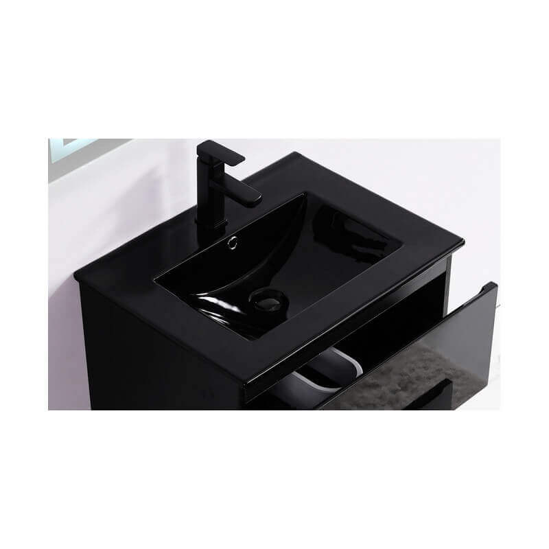 Elija el único sumidero oscuro receso en brillante cerámica negra.