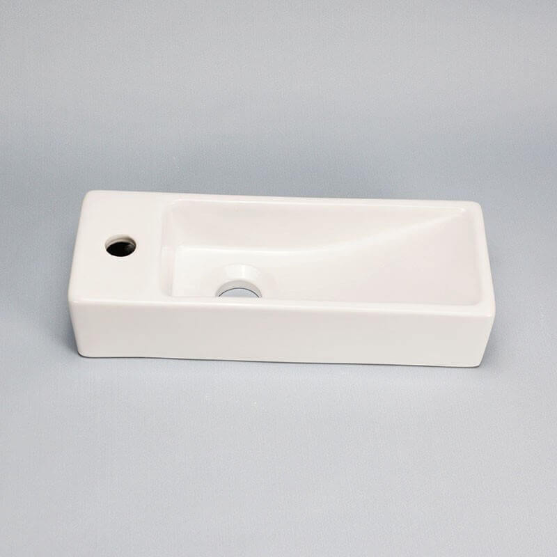 La pequeña lavabo rectangular en porcelana blanca fue rigurosamente hecha para ofrecerle un lavado de manos original, de alta calidad y robusto.