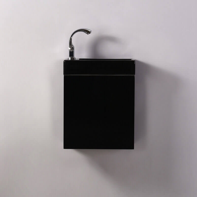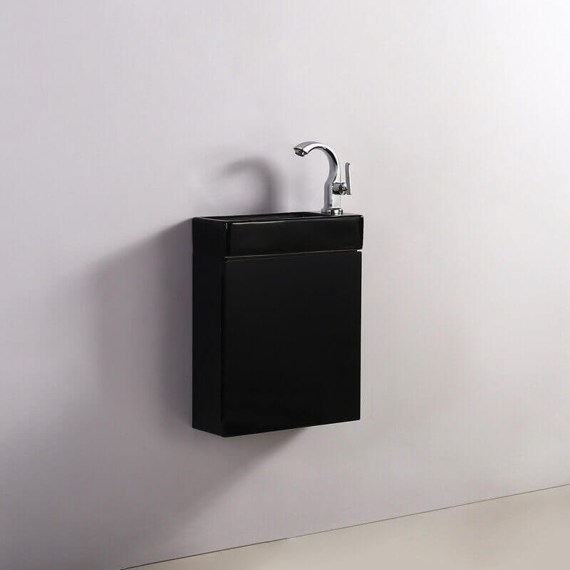 Chic y trendy, Minimalist Black Ceramic Hand Wash encajará fácilmente en pequeños espacios. El lavado de mano rectangular el espacio puede ser suspendido en una pared o colocado en un inodoro. Para suspender lavado de manos diseño elegir los accesorios según el material de su pared o partición.