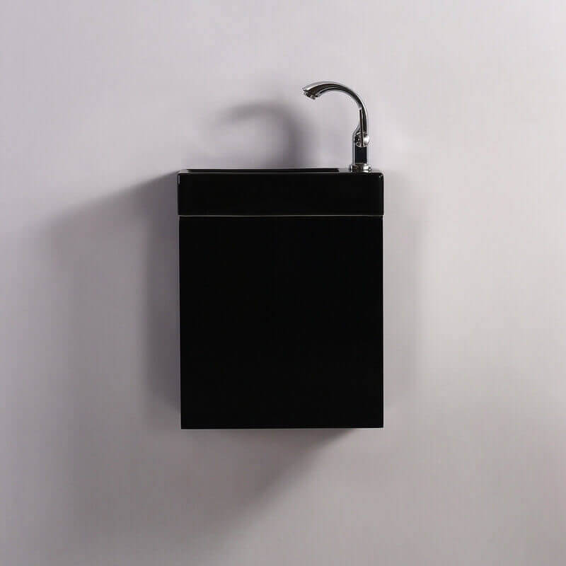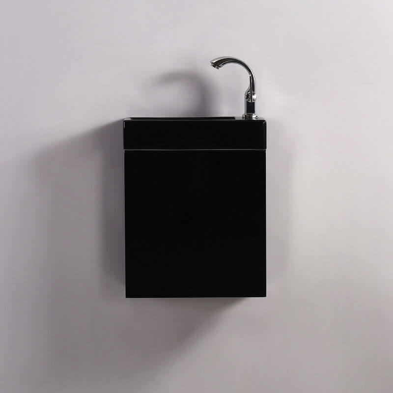 Esta mano de la lavadora ahorra espacio encaja muy bien con nuestro WC Cerámica negra de Charm Suspended.