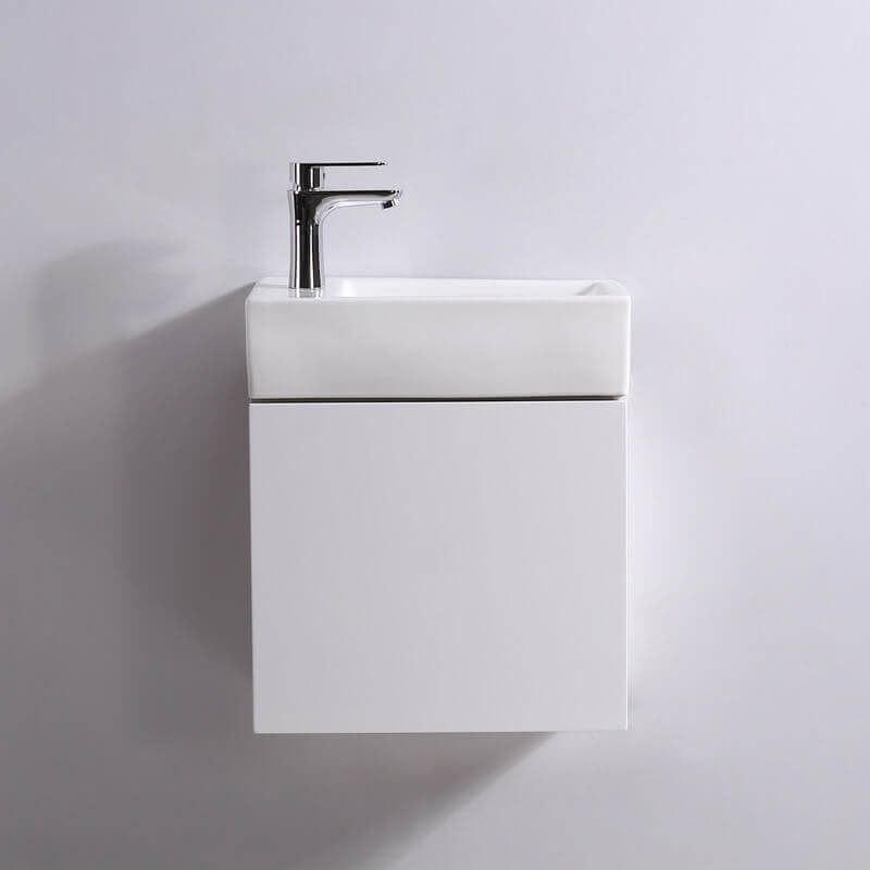 Muy práctico lavabo de mano suspendidas suspendidas suspendidas suspendidas suspendidas suspendidas suspendidas Ciudad se asienta bajo un lavar las manos de una dimensión de 45 X 25 cm (no incluida). Los lados de los muebles están hechos de paneles de partículas de 18 mm de espesor. La puerta blanca brillante está hecha de 19 mm MDF.