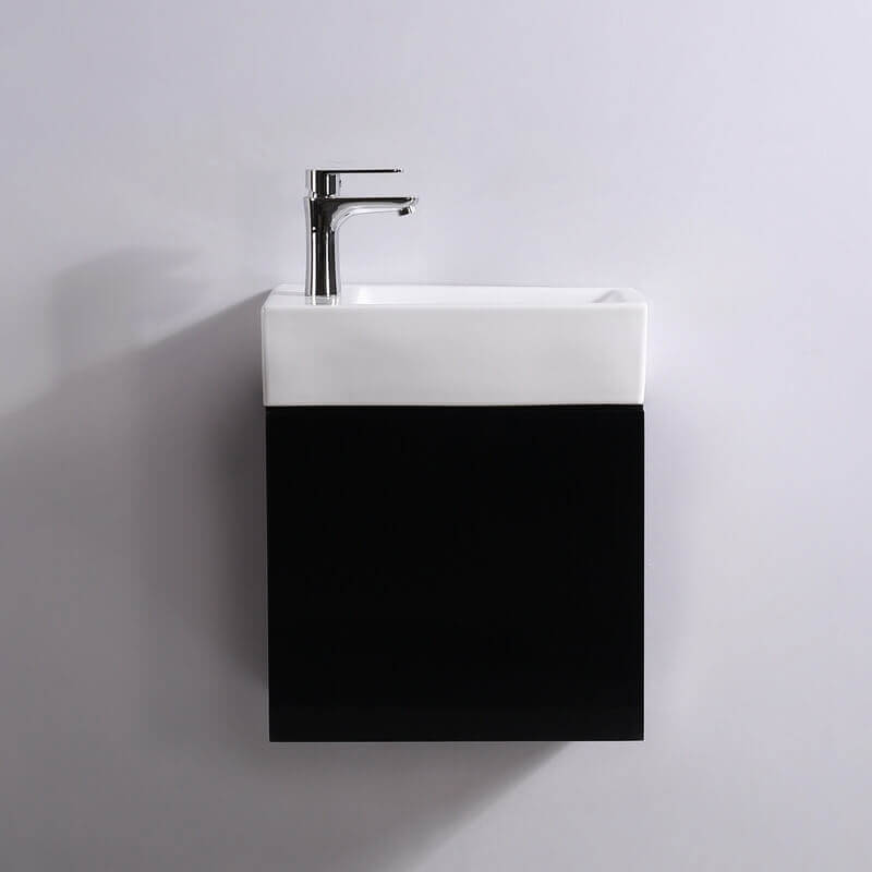 Elija el lavabo de mano oscuro colgando para un baño o aseo con una superficie reducida.