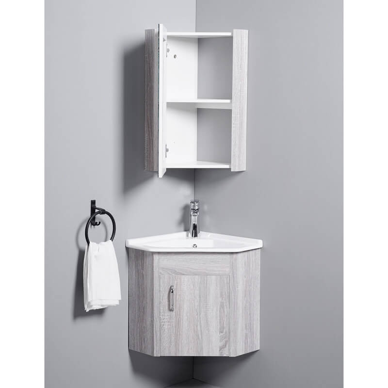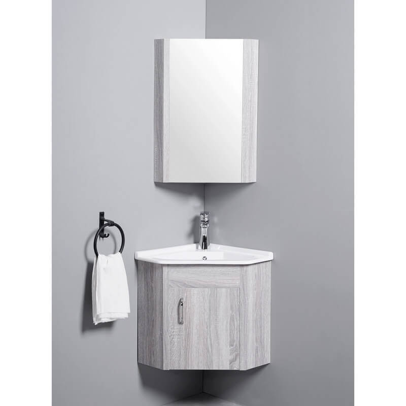 Práctica, el mobiliario Lavado de mano de Angle Lugar Ganancia de esquina hecha de PVC Fil Blanchi encajará fácilmente en espacios reducidos. Una cuenca de cerámica angular se ajusta al armario.