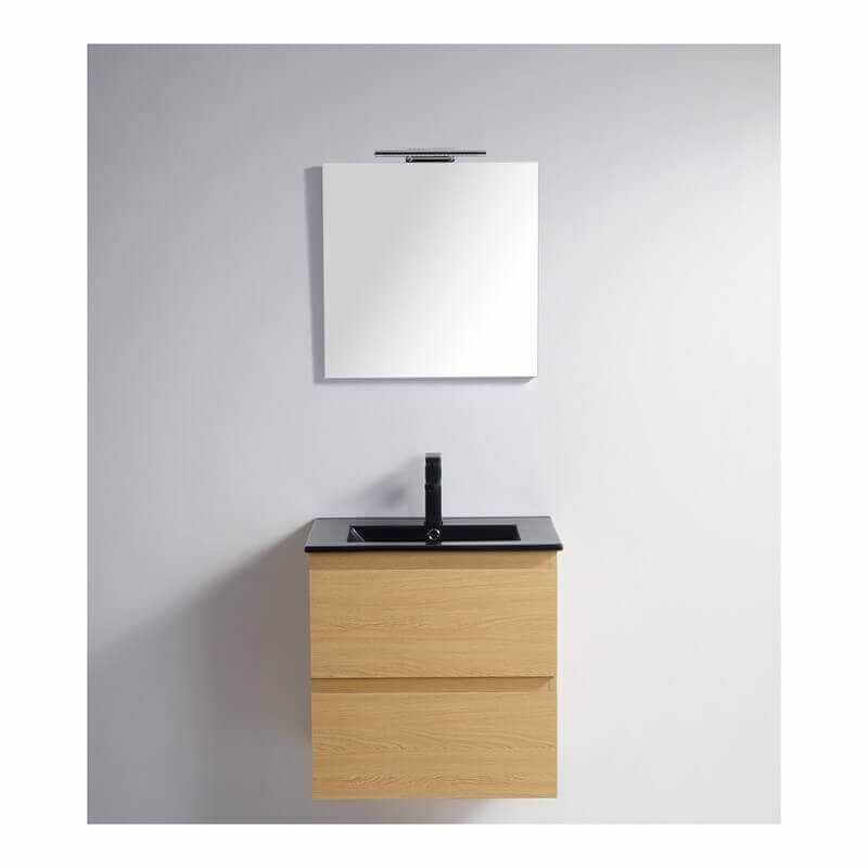 Descubre el muebles de baño simple cuenca suspensión bali con dos cajones y una cuenca de cerámica negra mate integrada. Este armario trasero de baño viene montado.