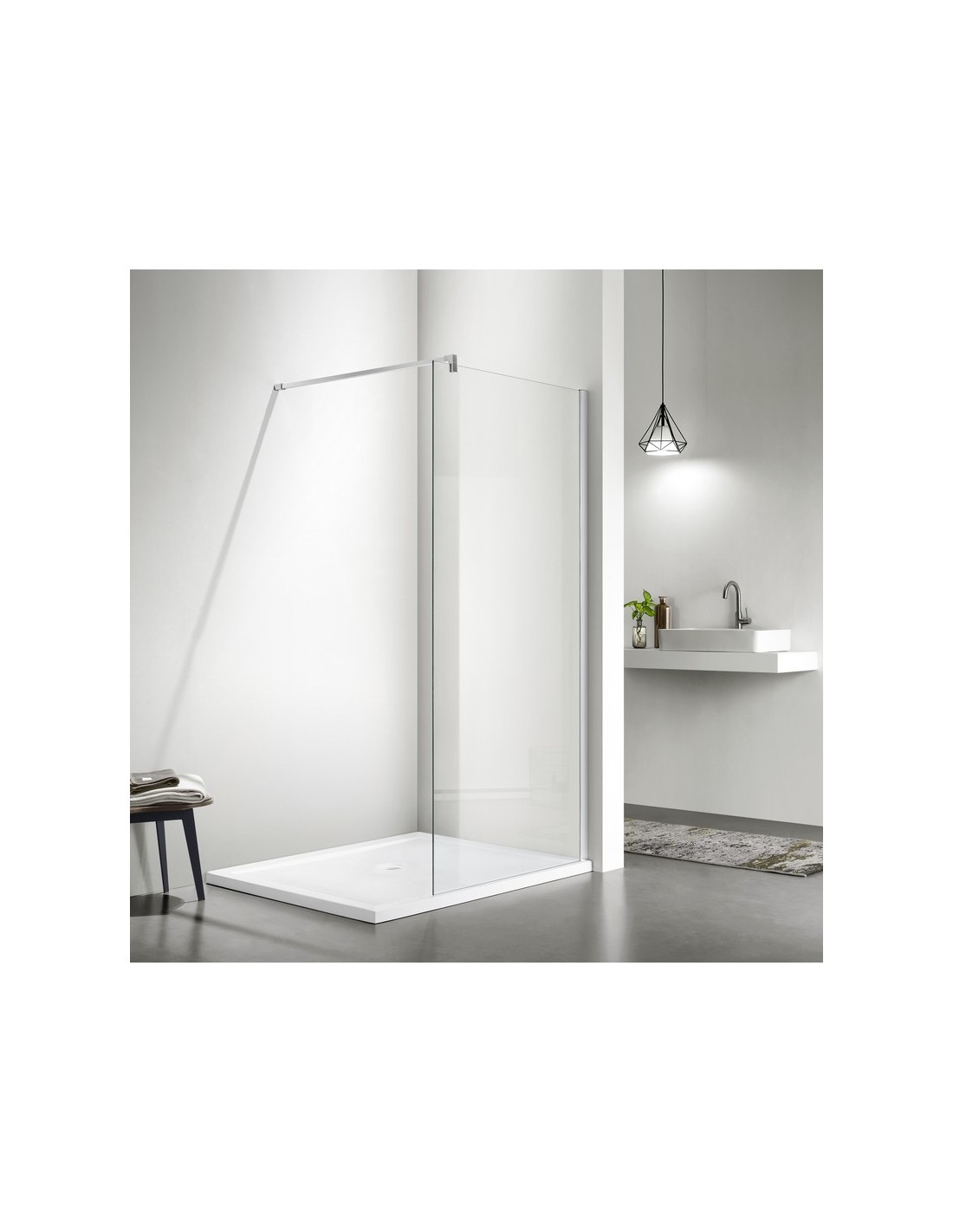 El vidrio con un espesor de 8 mm lo hace más estable y robusto. La altura de la pared de 195 cm es perfecta para limitar las proyecciones de agua.