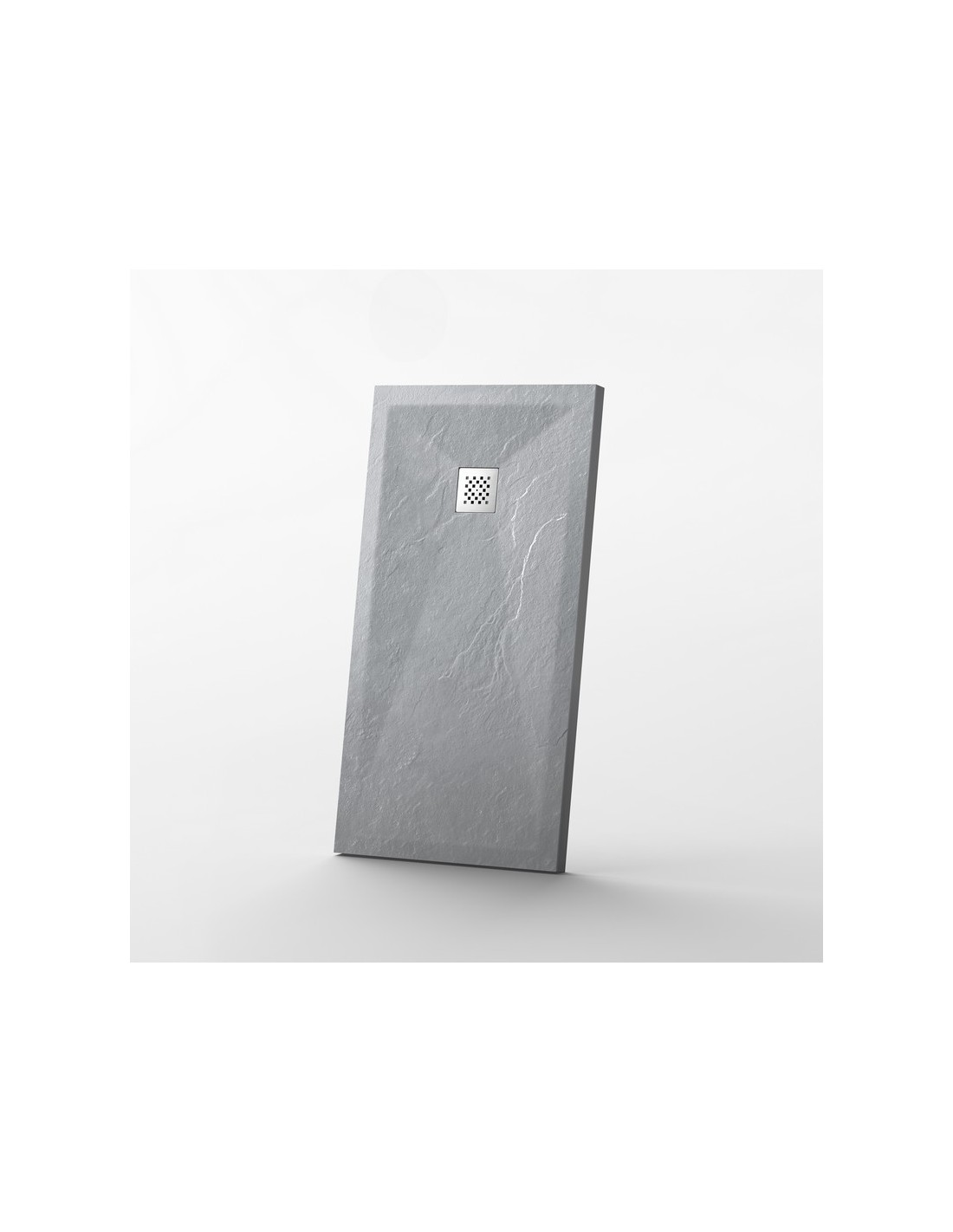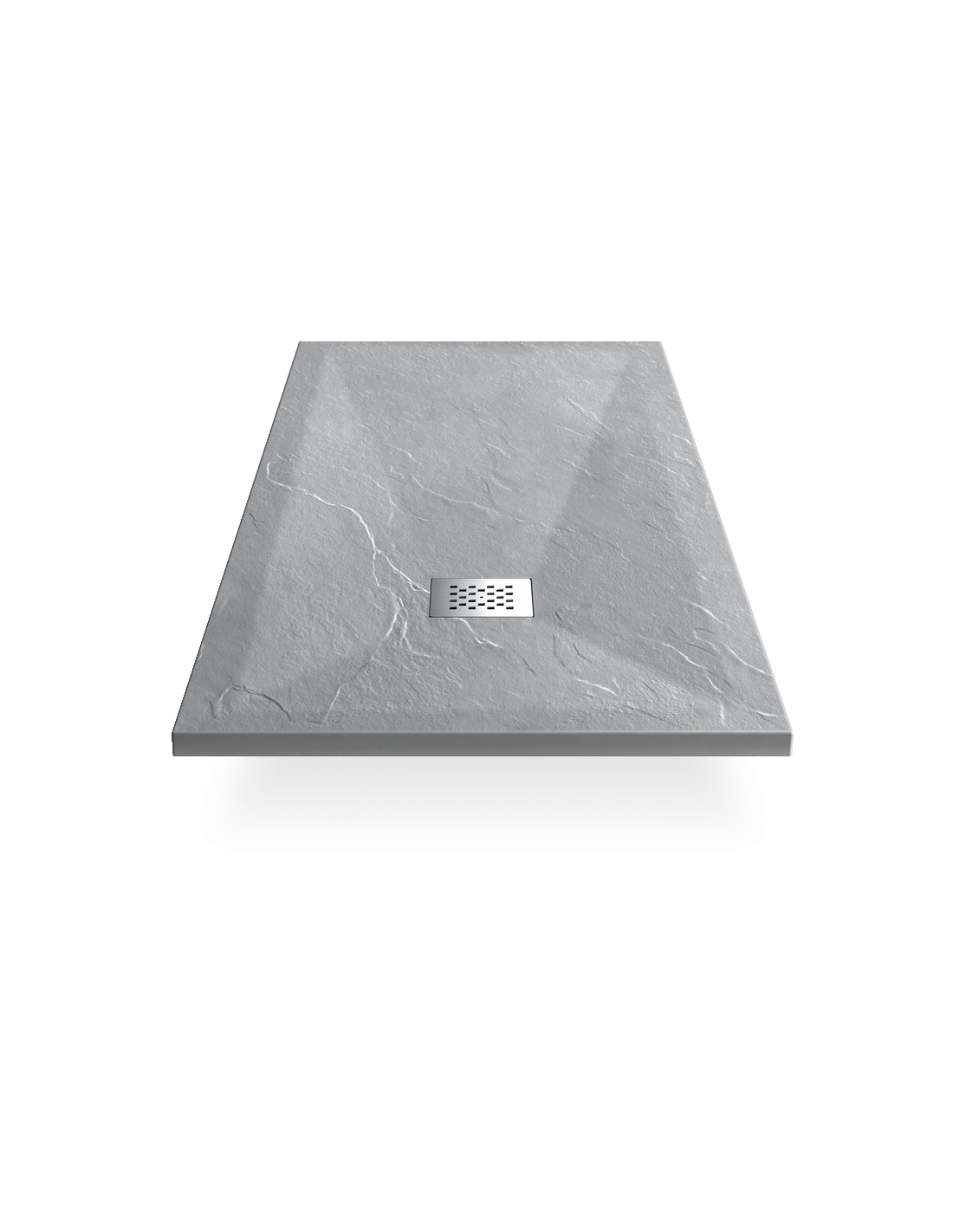 El Receptor de ducha Nazca 120x80 cm está en Piedra maciza con acabado de pizarra gris.