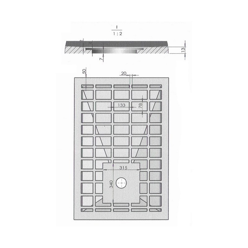 - Cuadrícula cuadrada 13.2 cm x 13.2 cm x 1.2 mm.