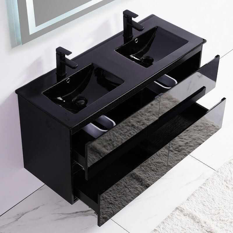 - Armadio da bagno con cassetti in MDF lucido nero 19 mm