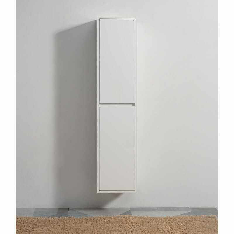 Scegli la colonna di stoccaggio sospeso Città per il vostro bagno design: scatola e facciata in MDF lucido bianco 19 mm. Il bianco luminoso porterà un tocco di sobrietà al vostro bagno. The mobili da bagno E' arrivata la citta'.