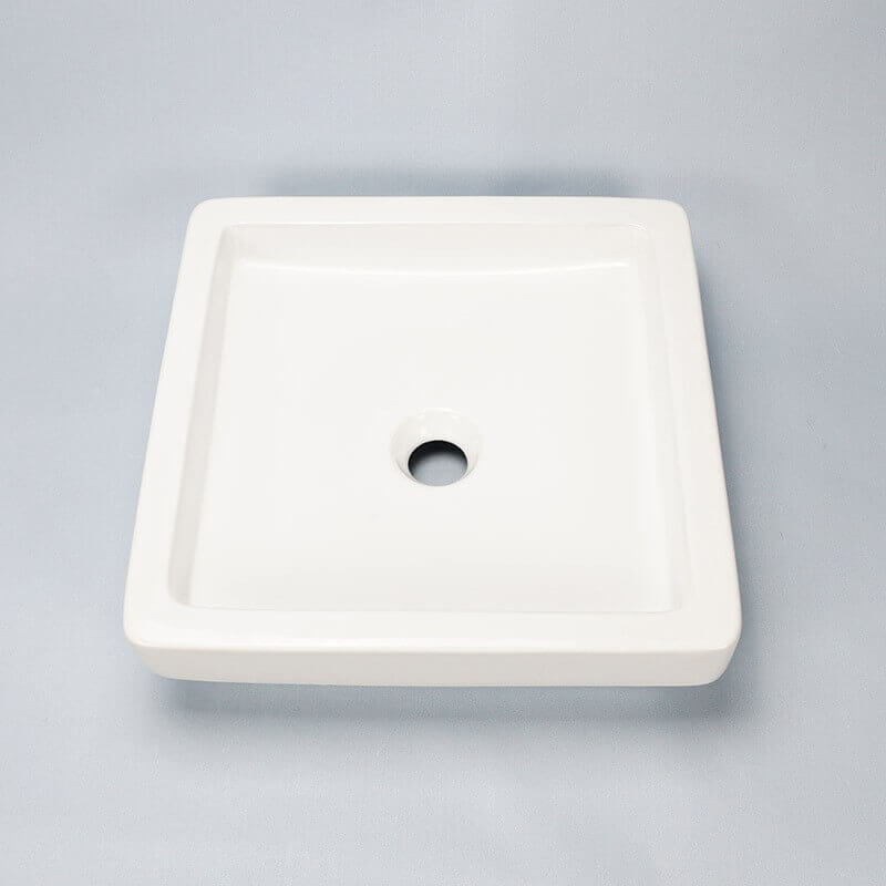 Il bacino quadrato Temp è senza gamma di rubinetti, e deve essere installato con una parete o un rubinetto cromato rialzato.