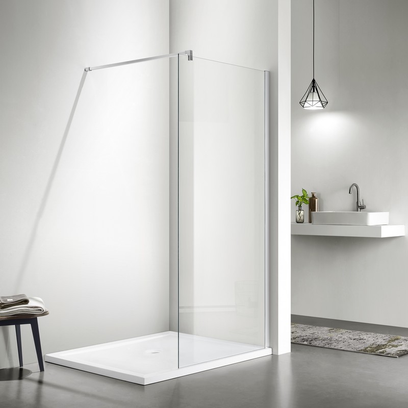 Il vetro con uno spessore di 8 mm lo rende più stabile e robusto. L'altezza della parete di 195 cm è perfetta per limitare le proiezioni d'acqua.
