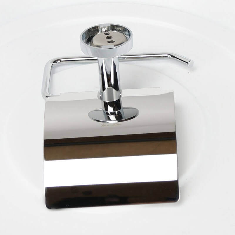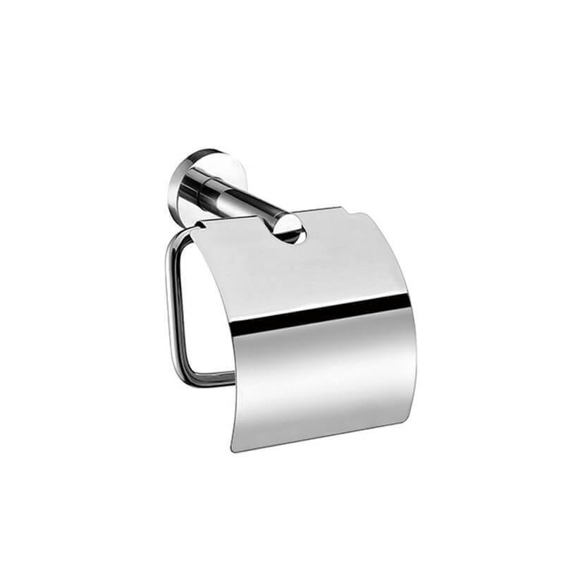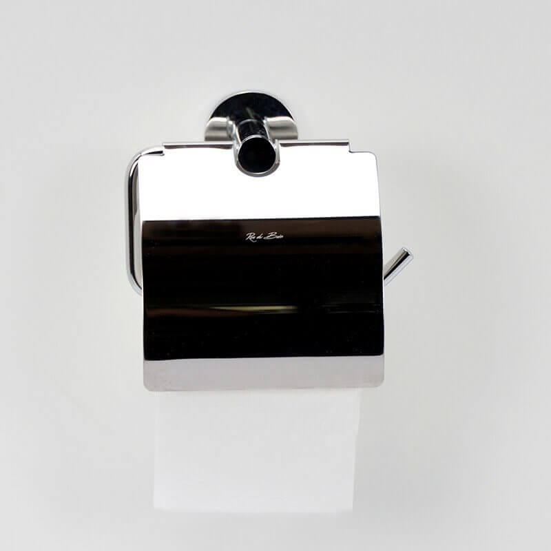 Distributore di carta con coperchio per fissare alla parete in ottone cromato.