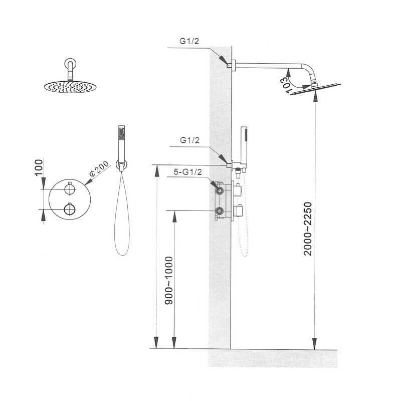 - Piastra di incasso rotonda (alta doccia a testa direzionale o doccia a mano / controllo a bassa temperatura)
