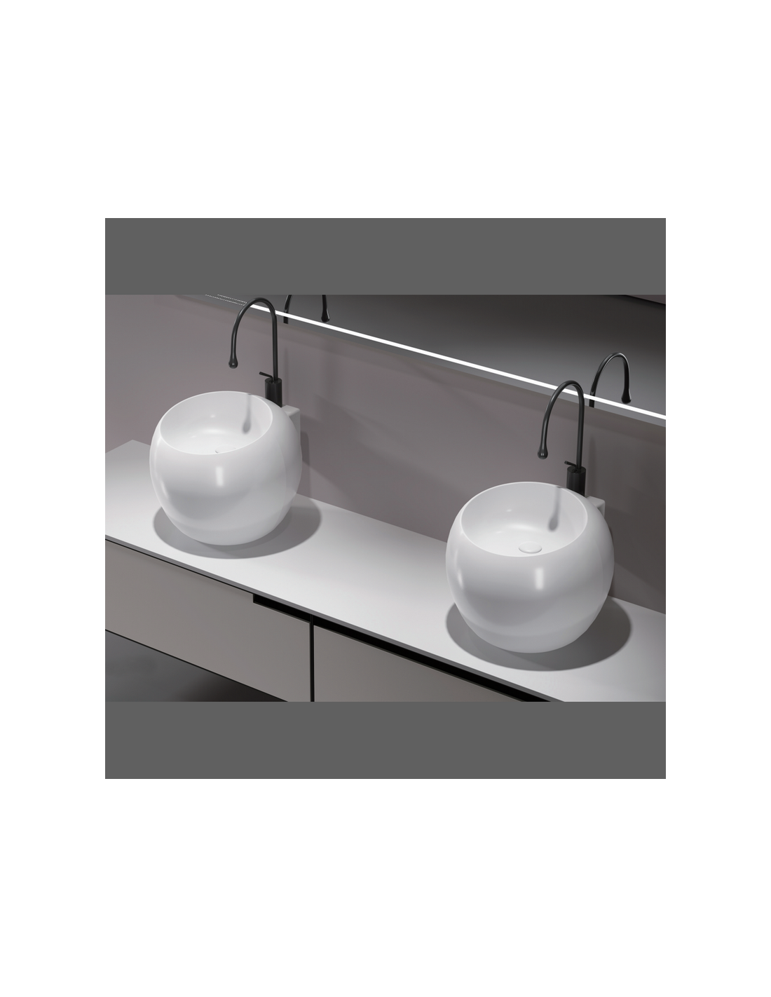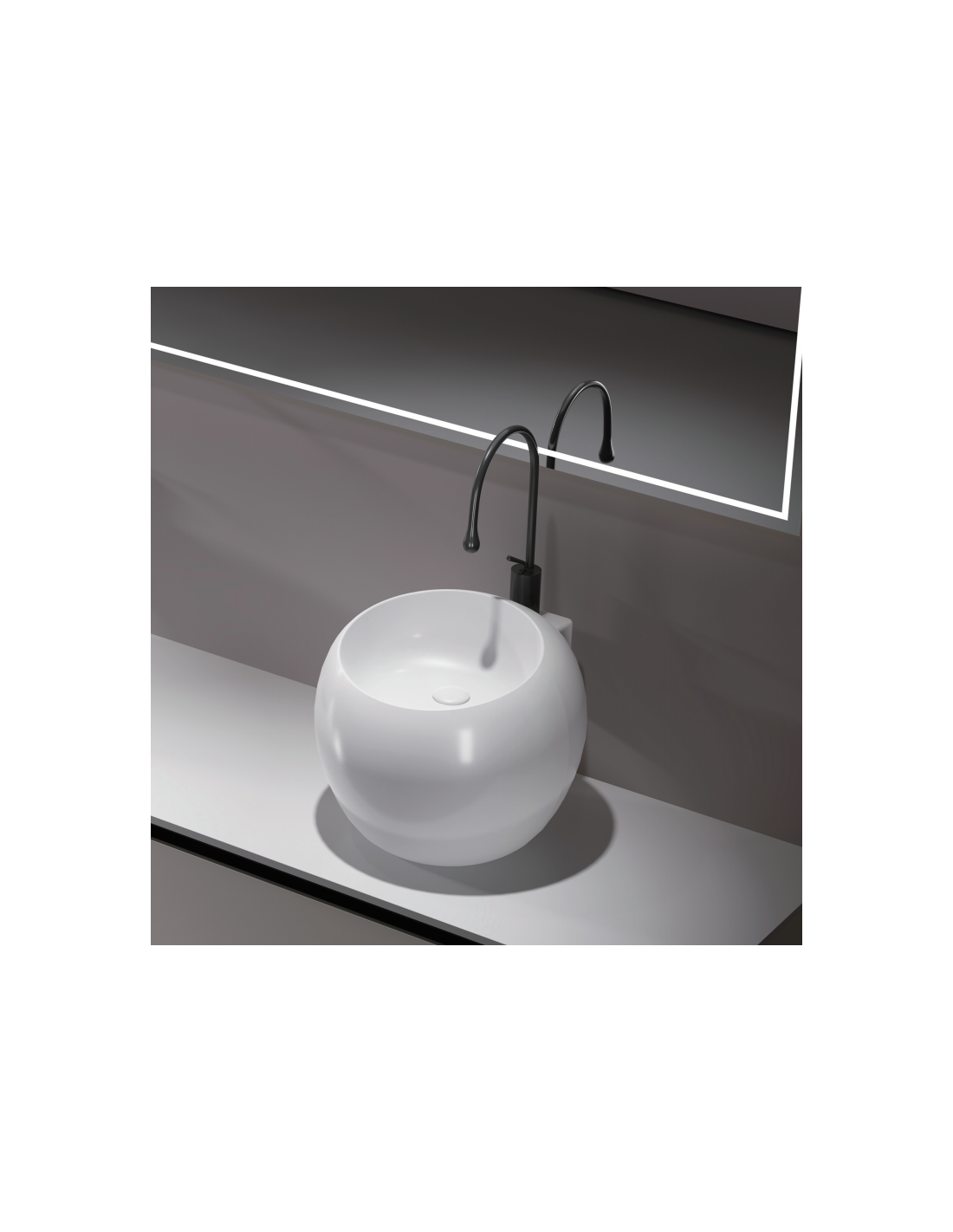 Bello da posare totem o per appendere in ceramica bianca lucida. Profondo 50 cm, il lavandino troverà il suo posto posto su un aereo o sospeso direttamente sulla parete del vostro bagno moderno.