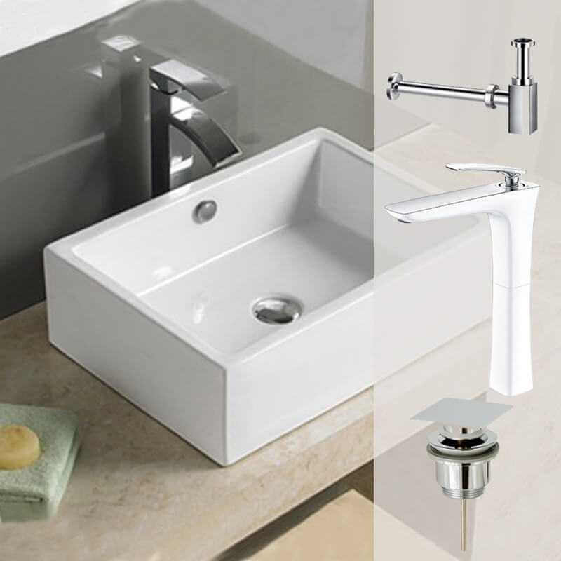 Un desiderio di rinnovamento nel vostro design bagno, quindi optare per questo pacchetto completo con il suo lavandino in ceramica rettangolare. Il suo colore bianco permette di adattarsi a tutti gli stili. Lei porterà un nuovo sguardo al vostro bagno spazio con lei valvola di miscelatore elevata, il suo legame e il suo sifone quadrato.